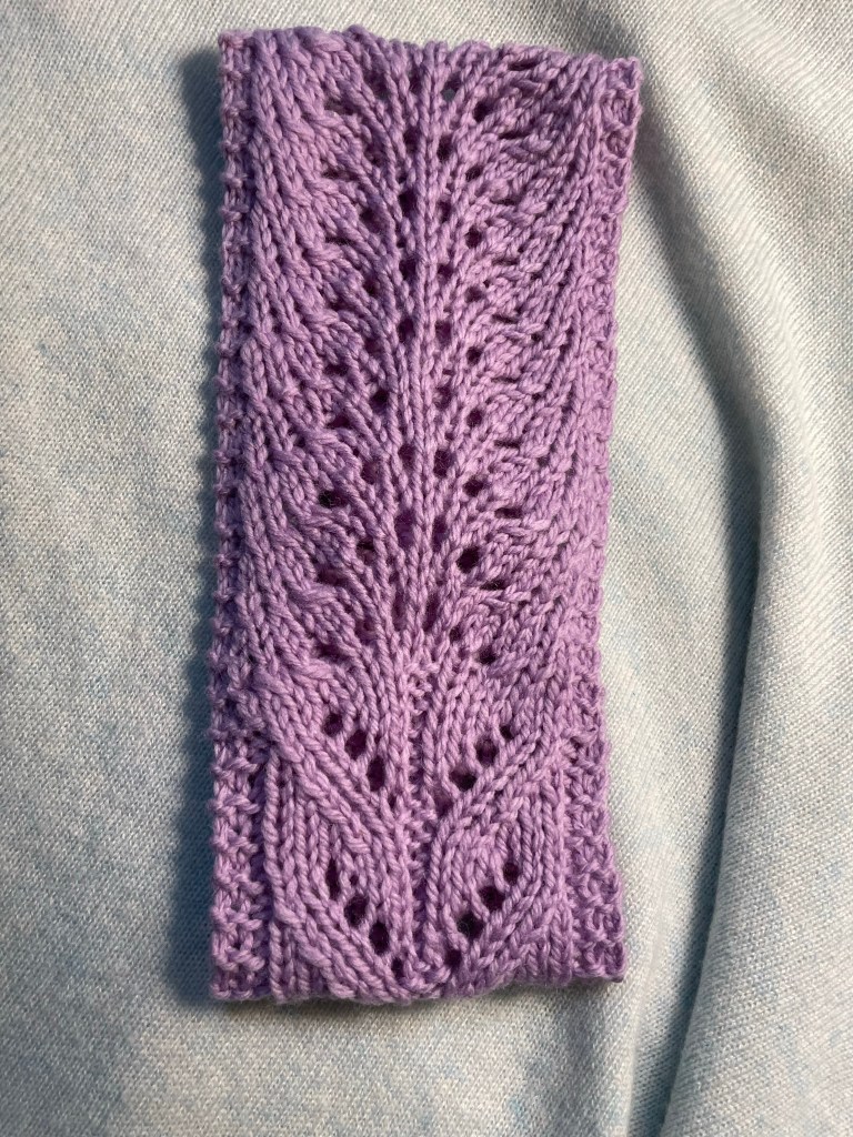 The sample above was knitted with Brown Sheep Nature Spun, worsted weight in lavender.