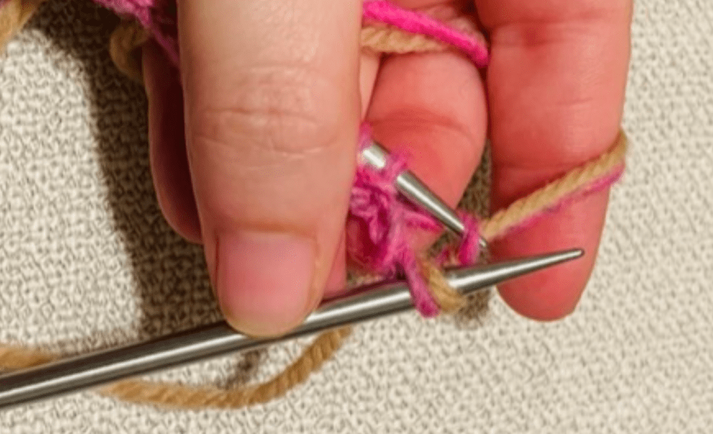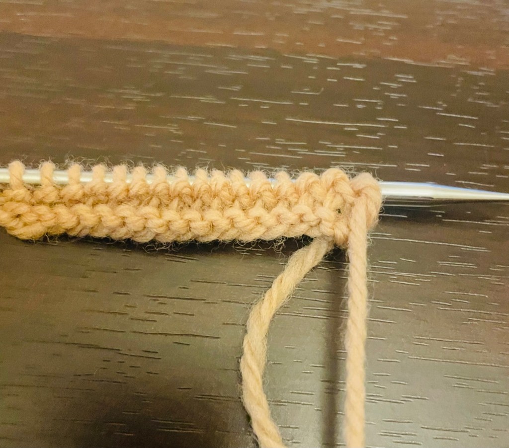 - Repeat step 1 until you’ve knit about 4-6 st.