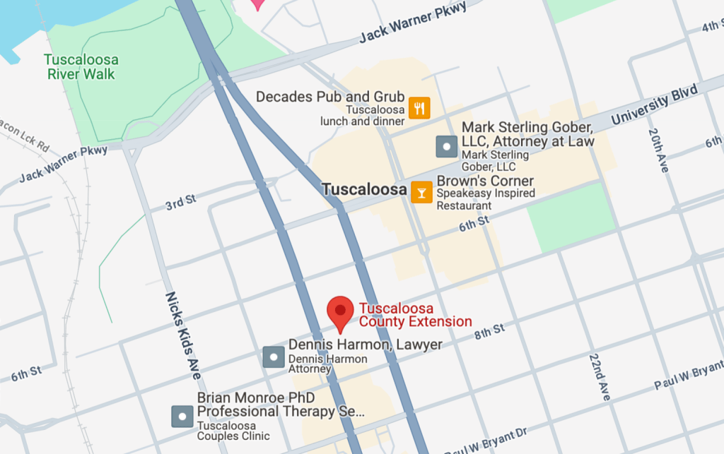 From Birmingham: Follow I-20 W/I-59 S to AL-69 N Tuscaloosa. Take exit 71B to merge onto AL-69 N/ I-359 N toward Tuscaloosa. Follow AL-69 and Lurleen B Wallace Blvd to 7th st.